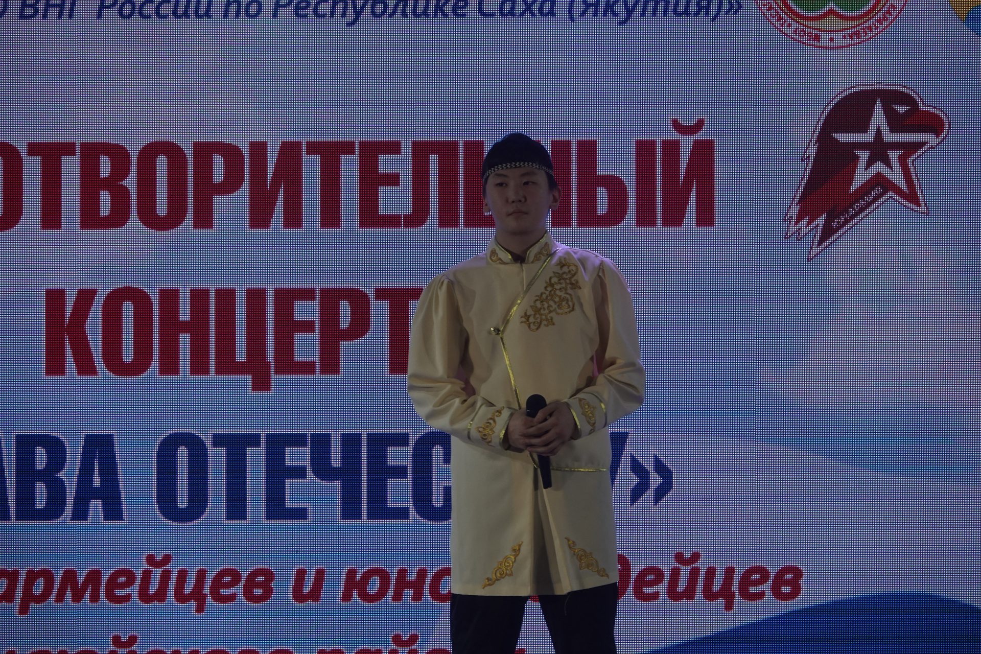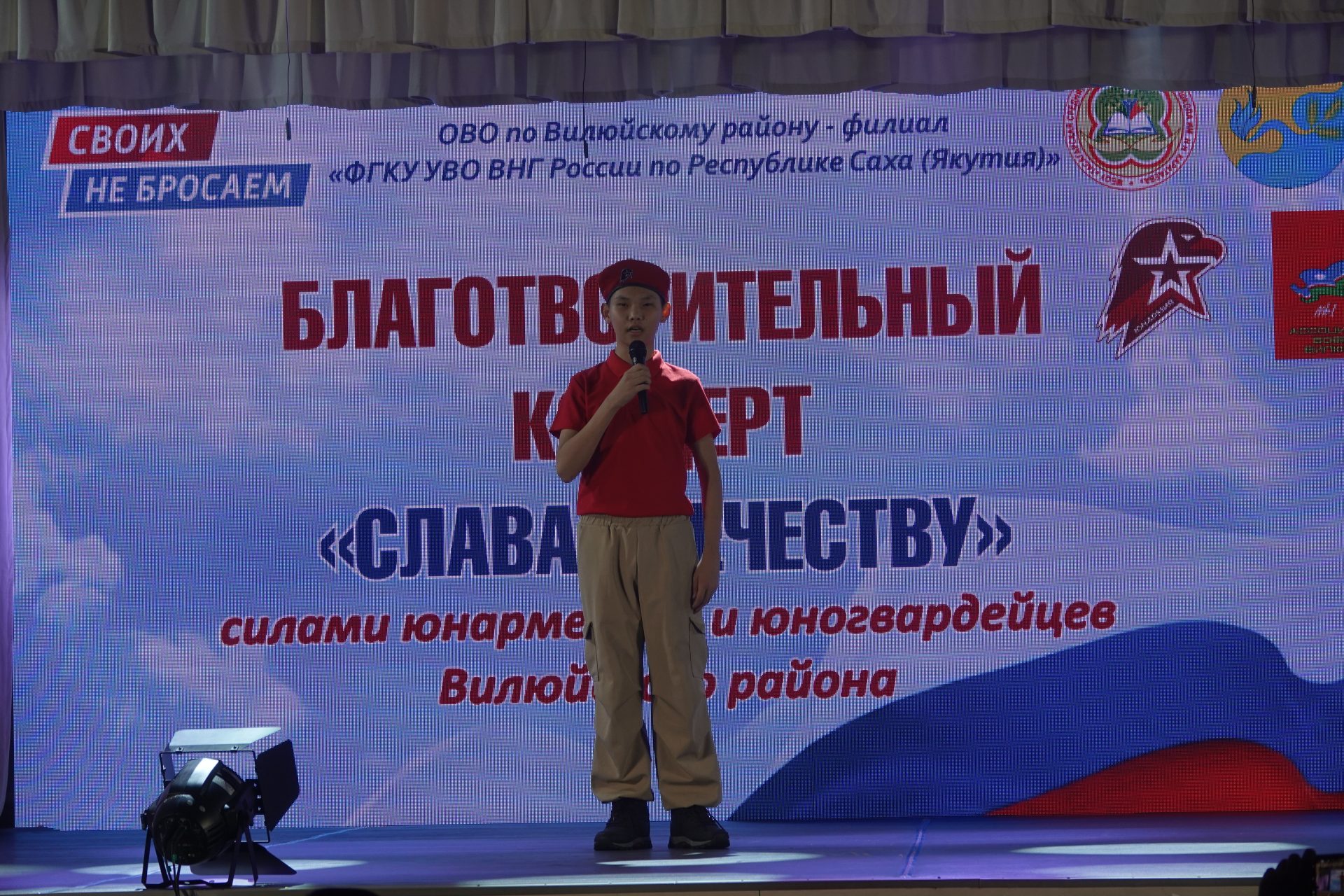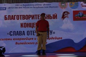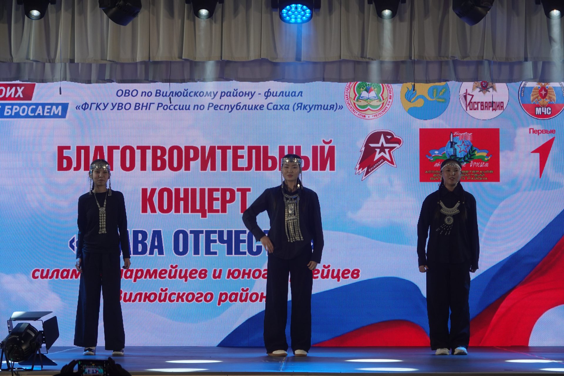 Олунньу 20 күнүгэр Аҕа дойдуну көмүскээччи күнүн көрсө улуустааҕы росгвардия уонна юнармия кылаастара “Эйгэ” норуот айымньытын Дьиэтигэр “Служу Отечеству” аһымал кэнсиэрт тэрийдилэр. Кэнсиэртэн киирбит 38.500 солкуобай харчыны анал байыаннай дьайыыга сылдьар байыастарга ыыттылар. Оҕону кыра сааһыттан патриотическай өйгө-санааҕа, тыыҥҥа иитии учуутал үлэтин биир сүрүн хайысхатынан буолар. Учуутал уонна төрөппүт утумнаахтык ыытар үлэлэрин түмүгэ – Ийэ дойдутугар бэриниилээх, төрөөбүт дойдутун туһугар ис сүрэҕиттэн кыһаллар, дойдутун, дьонун аатын түһэн биэрбэт туһугар олорор киһи иитиллэн-такайыллан тахсыахтара.