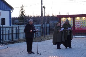 Нэһилиэк дьаһалтатын баһылыга Каратаев С.С.“Эйэлээх олохпут иһин кыргыһыы хонуутугар сырдык тыыннарын толук уурбут биир дойдулаахтарбытынан киэн туттабыт, кинилэр хорсун быһыылара, ааттара көмүс буукубаннан суруллан үйэлэргэ сүппэт сырдык өйдөбүл буолуоҕа” диэн туран кэриэстэбил мүнүүтэ биллэрдэ.